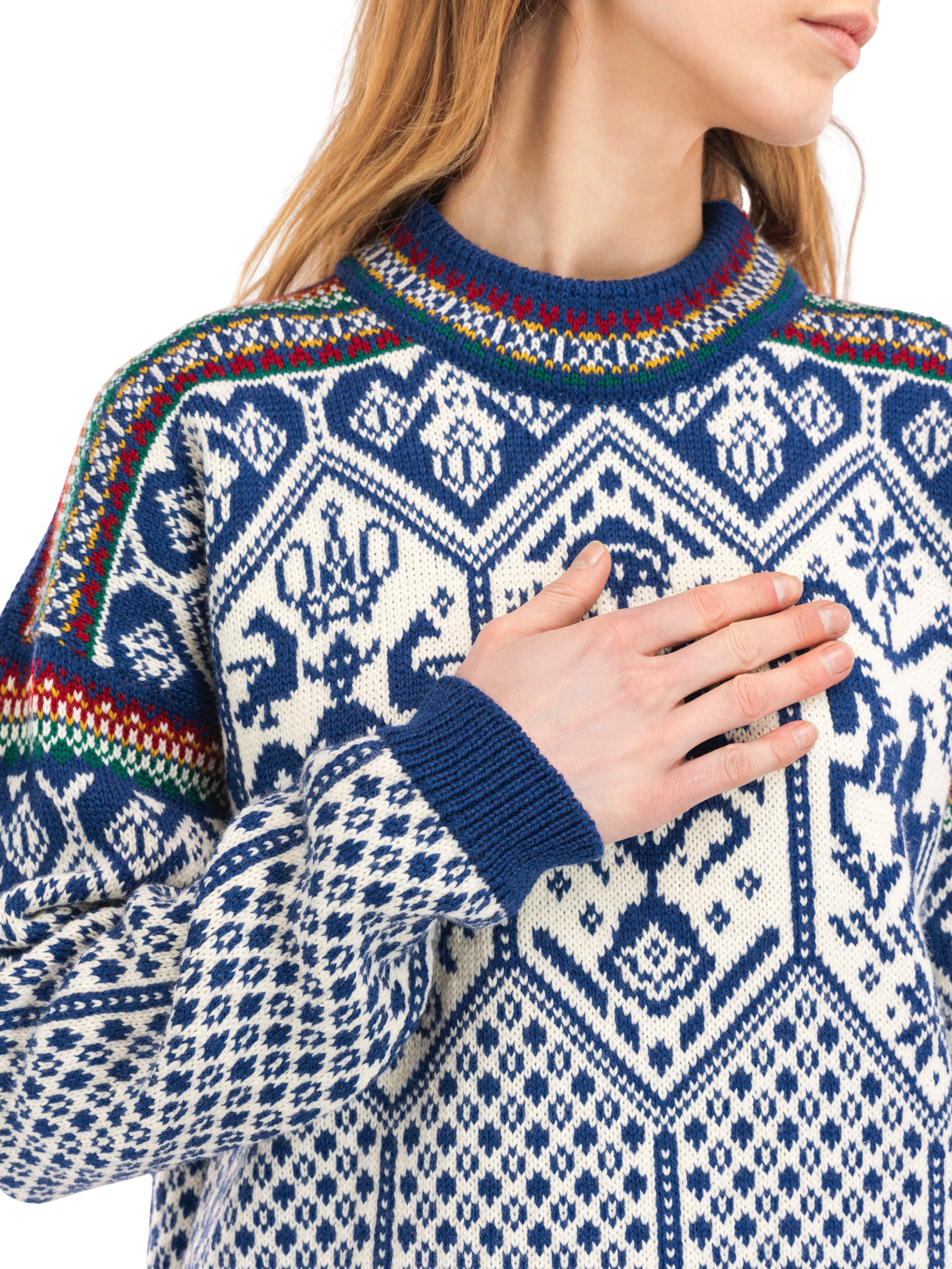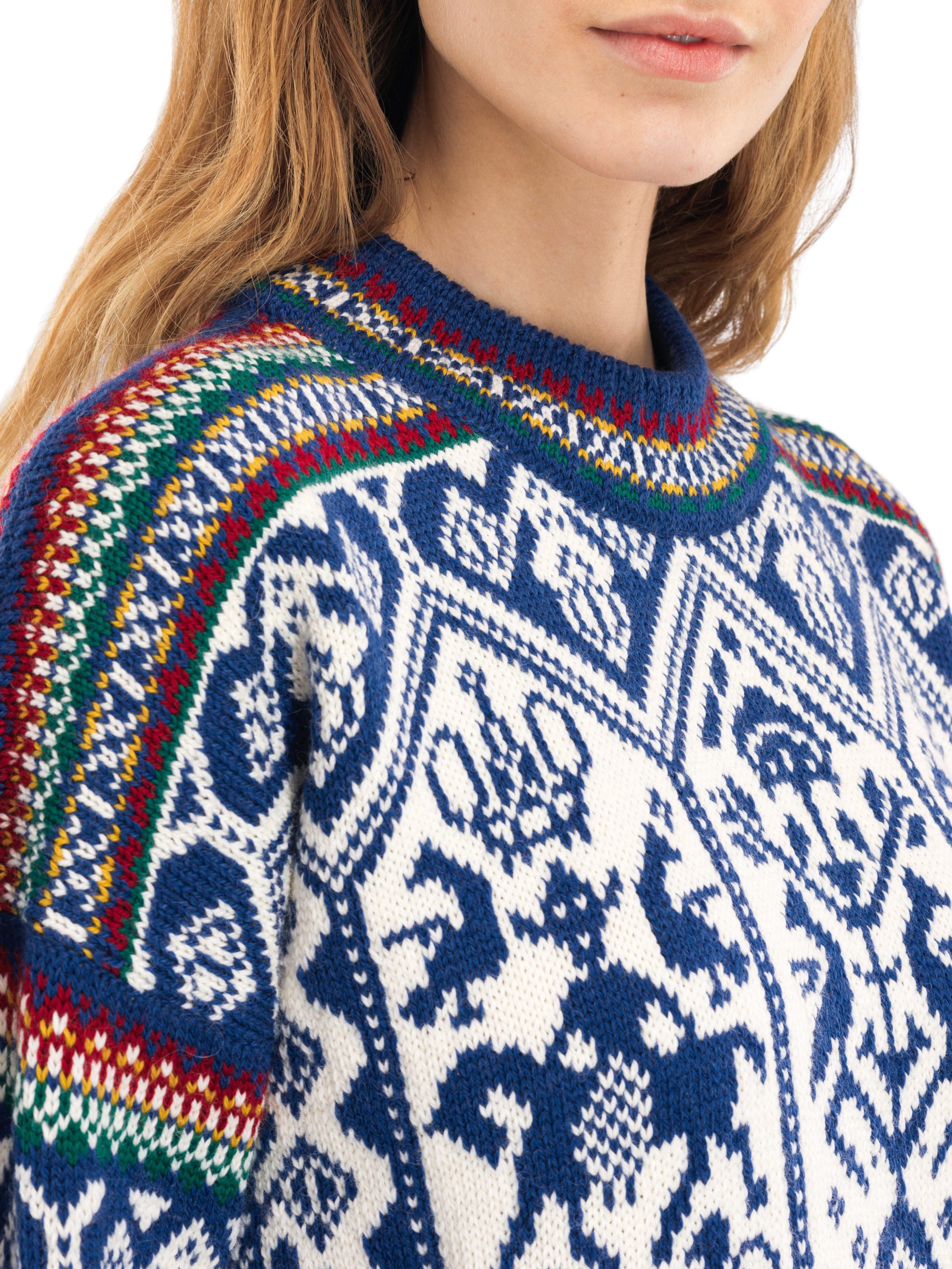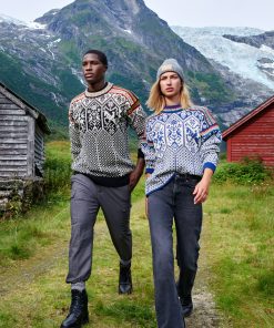 The updated 1994 sweater retains the distinctive symbols inspired by Norse mythology but is crafted in a thinner, softer yarn, with an improved fit and refreshed color palette. Knitted at our factory in Dale, Norway, it is made of 100% wool – just like the original.