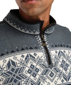 The Blyfjell is a best-selling men’s sweater rooted in timeless Norwegian tradition. Made from 100% lightweight wool, it offers natural warmth and comfort while featuring a quarter-zip neckline with a fleece-lined collar for added softness. The intricate design showcases classic Norwegian folk patterns, including variations of the iconic eight-petal rose – a symbol of Norwegian heritage and artistry.