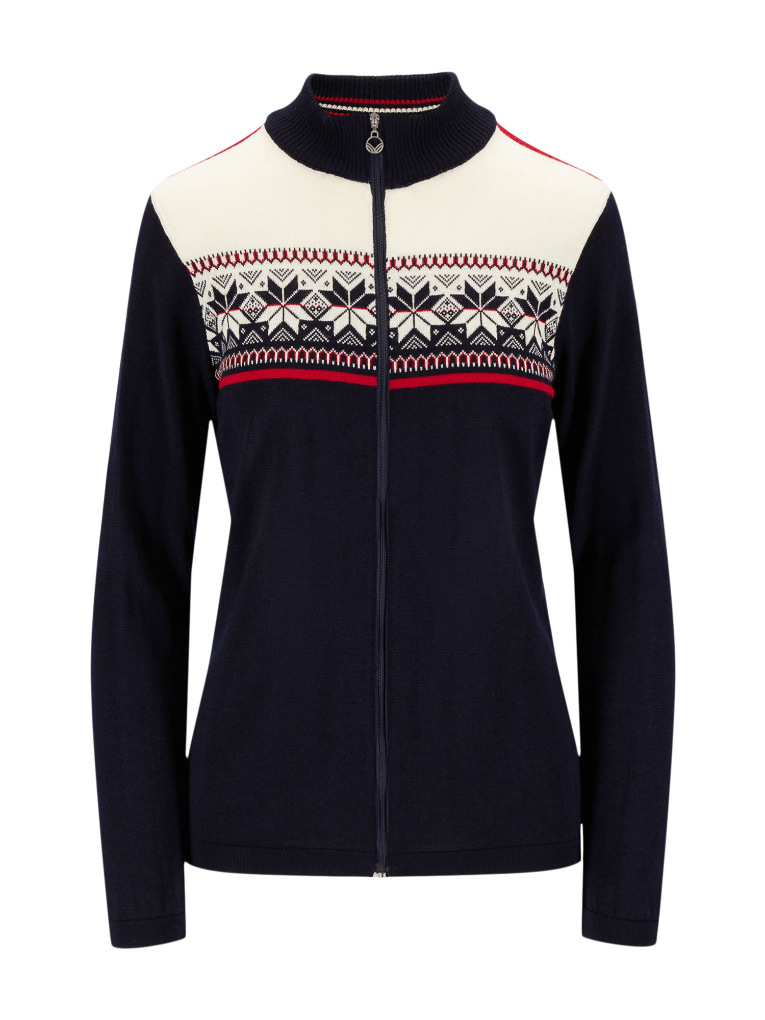 A sporty, lightweight and soft merino wool jacket with block colors and pattern with the classic eight-petal rose. The jacket has a zippered closure and a semi-high neck. Liberg can be used both as a leisure jacket and for sporting activities.