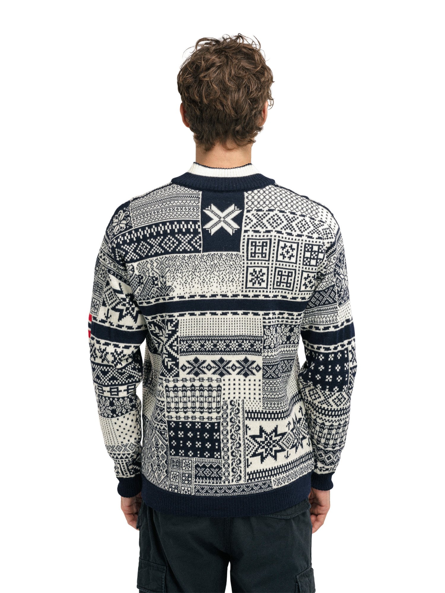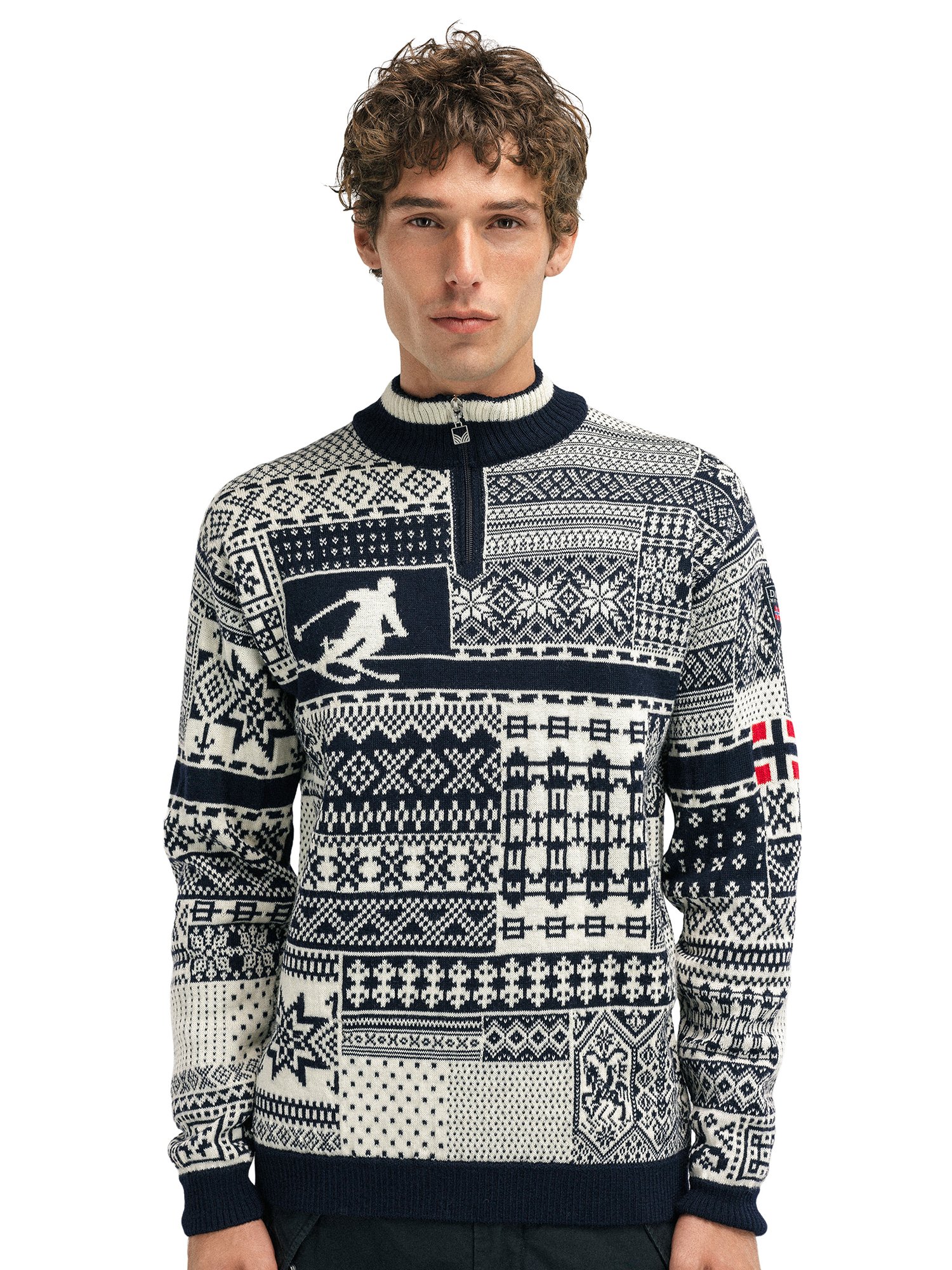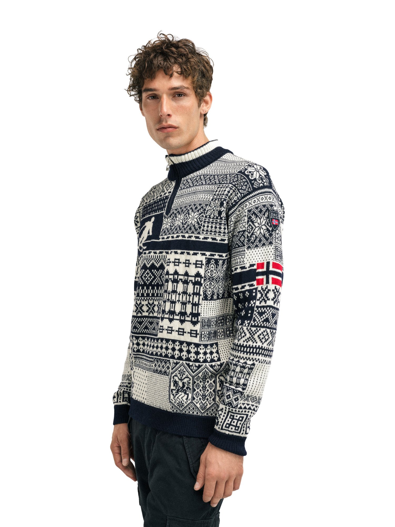 Ever since 1956 we have made official Olympic team sweaters for the National Norwegian Cross-Country ski team. This sweater is a tribute to our Norwegian Olympic history, with a pattern based on all our 18 official team sweaters.