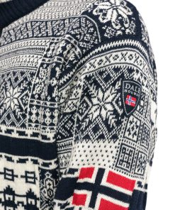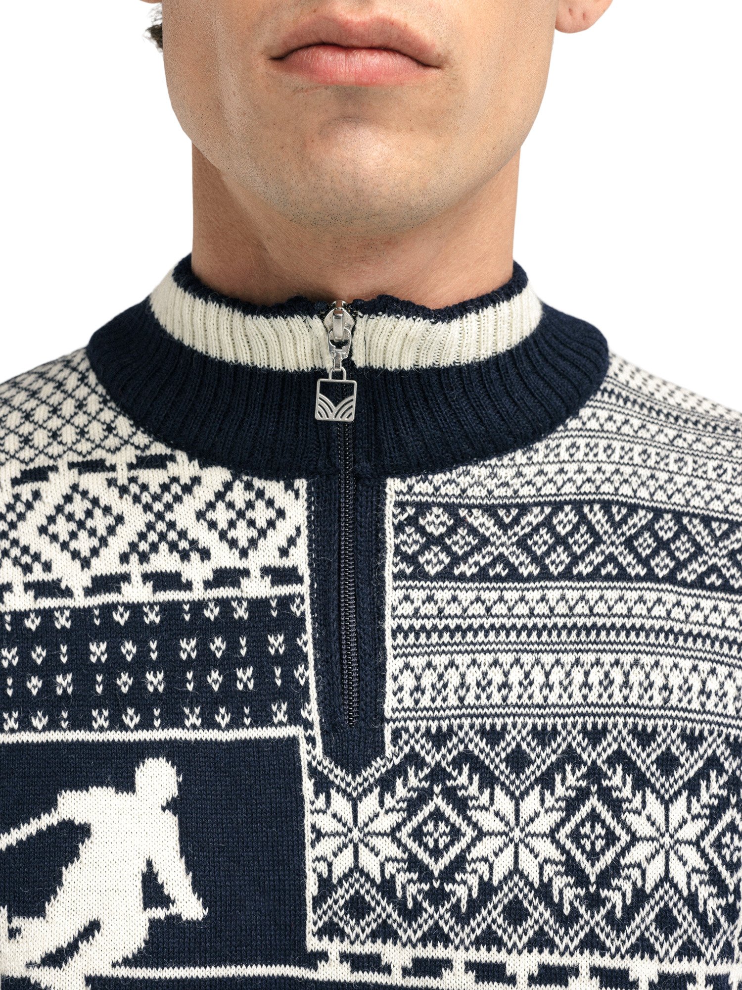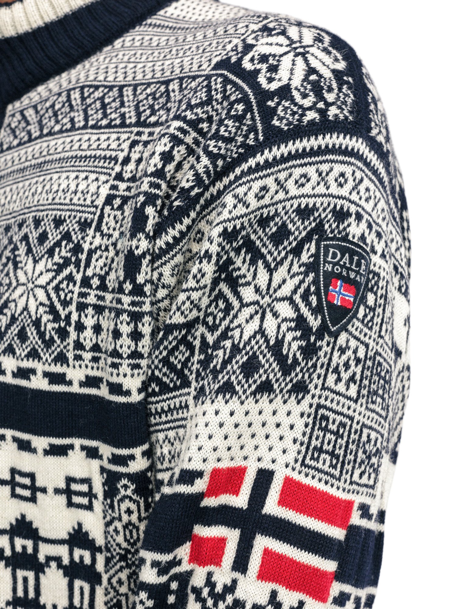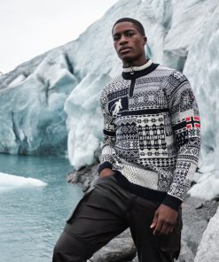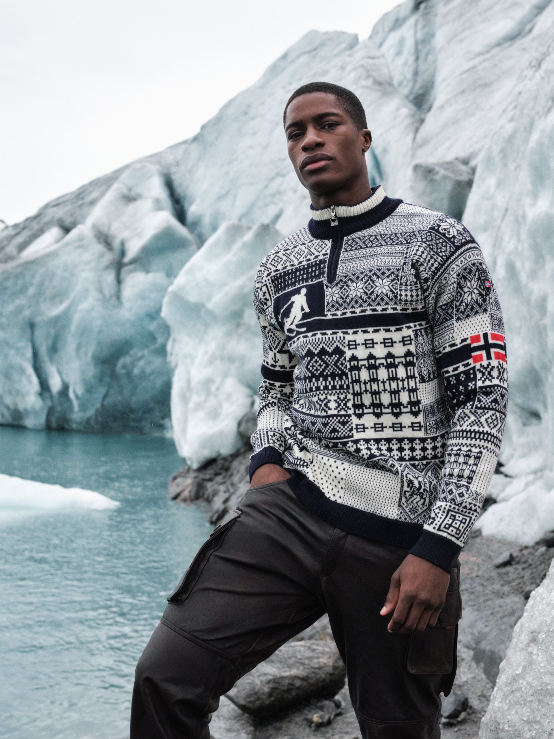 Ever since 1956 we have made official Olympic team sweaters for the National Norwegian Cross-Country ski team. This sweater is a tribute to our Norwegian Olympic history, with a pattern based on all our 18 official team sweaters.