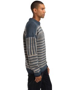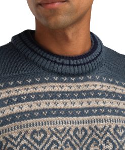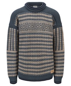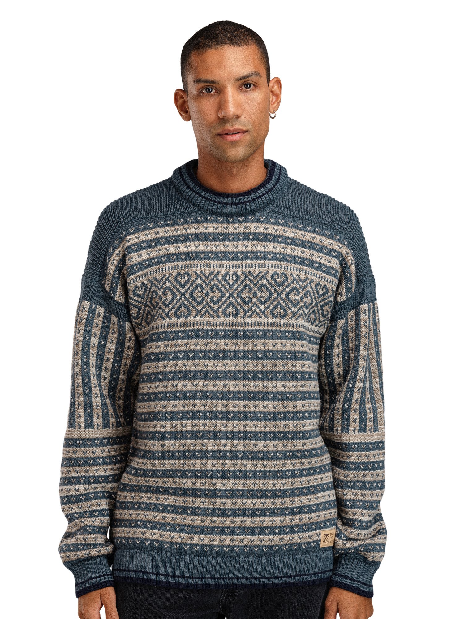 The Ramberg sweater brings a unique urban flair to a timeless design. With a relaxed fit, ribbed shoulder details highlighting the drop shoulder, and striking contrast stripes at the neck, sleeves, and bottom hem, Ramberg effortlessly merges classic and contemporary. Inspired by the historic Fana sweater, Ramberg reimagines this heritage piece for today. The classic stripes are updated with a rounded eight-petal-rose design around the chest and a traditional lice pattern, while shoulder accents and stripe rib finishes add a fresh, dynamic touch. Multiple yarn colors blend in the thread mix, giving the Ramberg a vibrant, urban character.