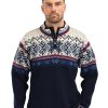 A super-soft merino sweater featuring intricate pattern details in a mix of contrasting colors. Inspired by classic ski sweaters, the Randaberg sweater is crafted from soft, airspun wool for exceptional warmth and comfort. The crew neck sits snugly, providing cozy warmth on chilly days.